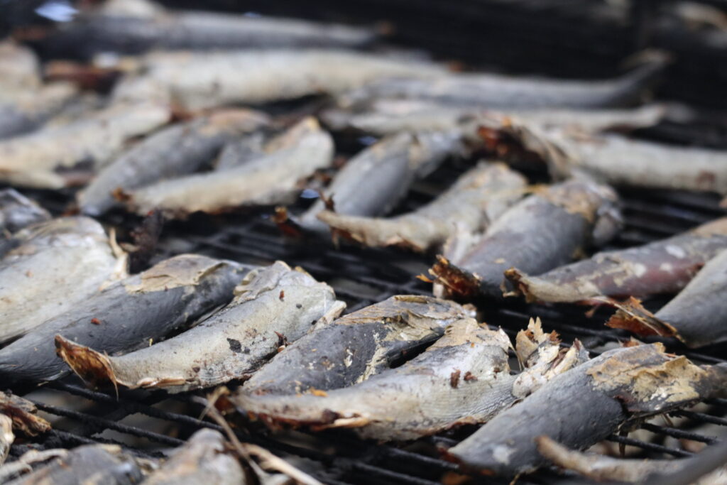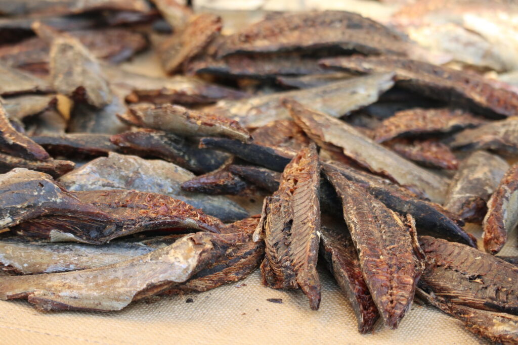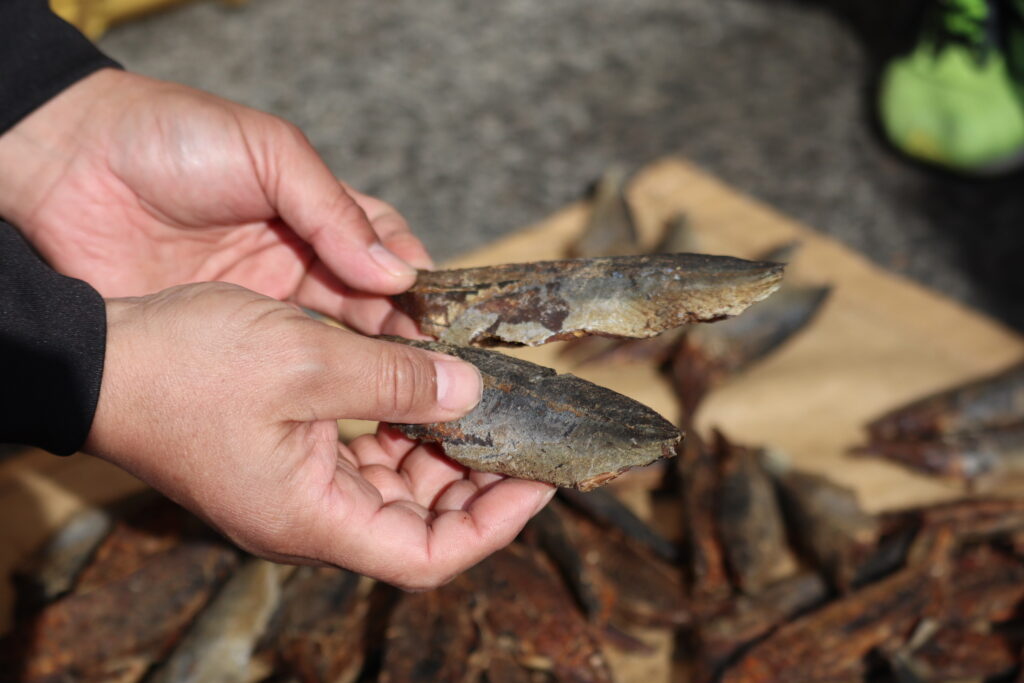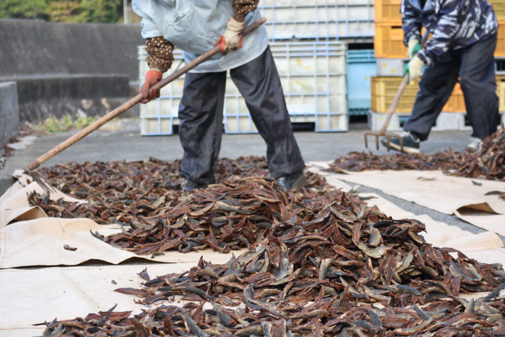 その後、一尾一尾手作業で頭と内臓、中骨を落として重ならないように並べ、一週間から10日かけて焙乾して水分を減少させる。さらに天気のいい日に半日ほど日光にあてると漁穫時に比べ約2割の大きさに縮む。