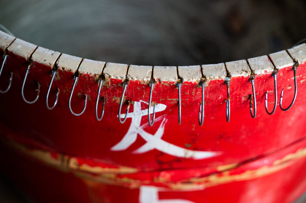 たる(木桶)に針のついた糸を付けた漁具を潮流に乗せ、金目鯛を漁獲する方法がここ室戸には残る。